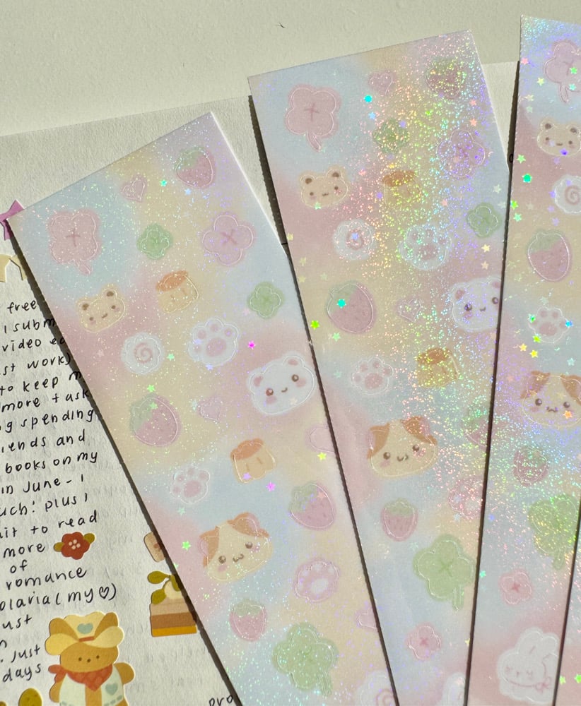 Once a favourite, this dainty sticker sheet is now back with our favourite motifs! Now available in a brand new stardust holo!